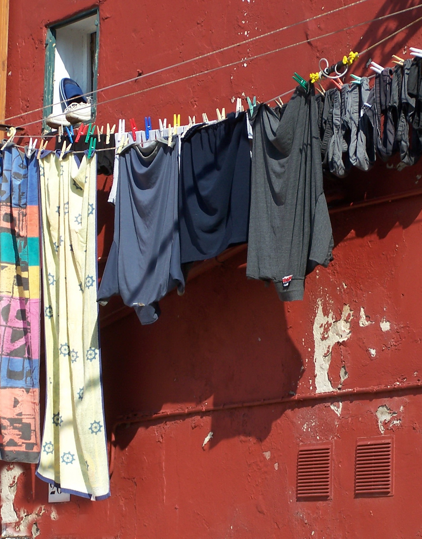 Leinen, Seide, schlecht gebügelt, zu viele Falten, zu oft schon gewaschen.