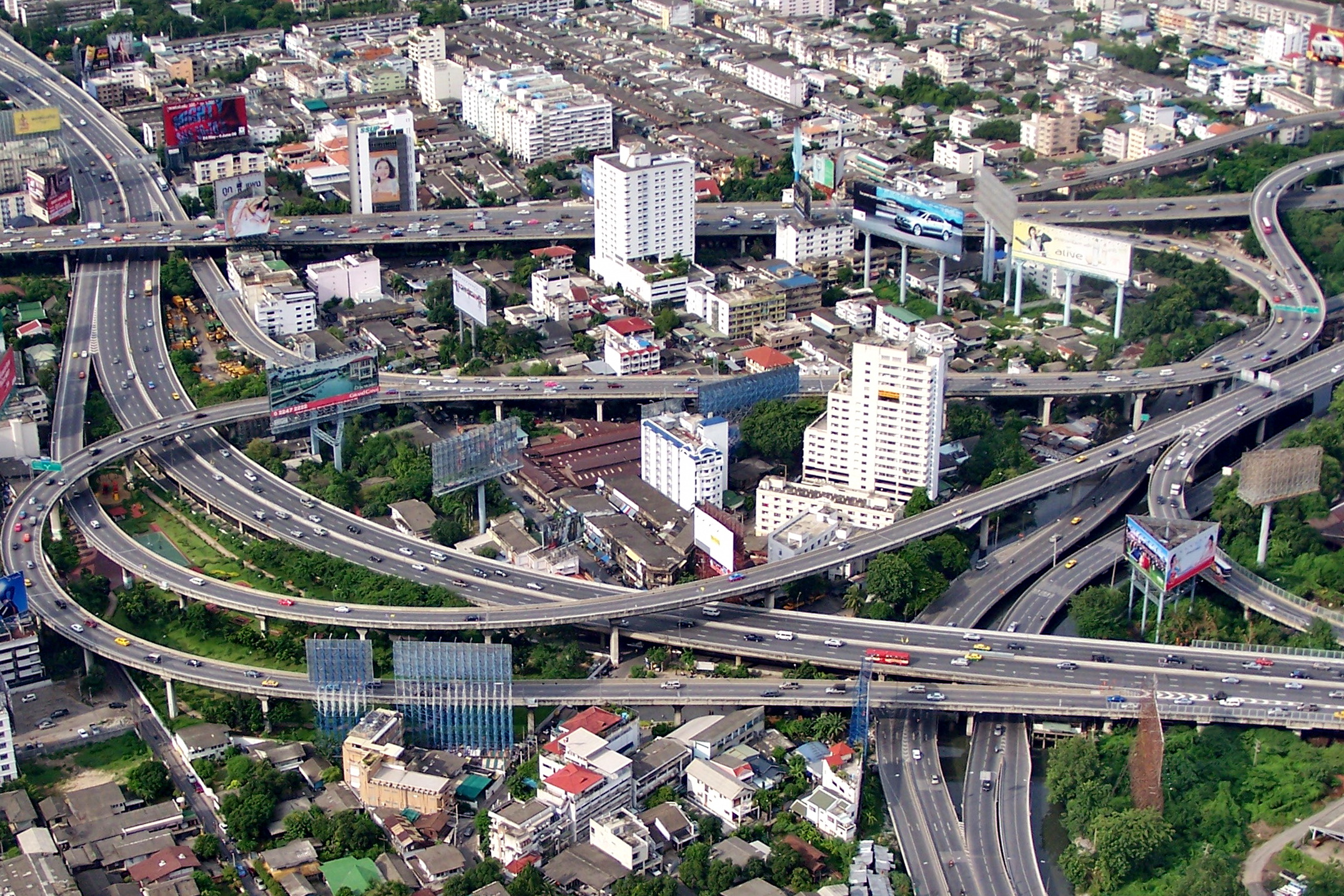 Völlig problemlos lebt es sich unter den Verkehrsbrücken Bangkoks.