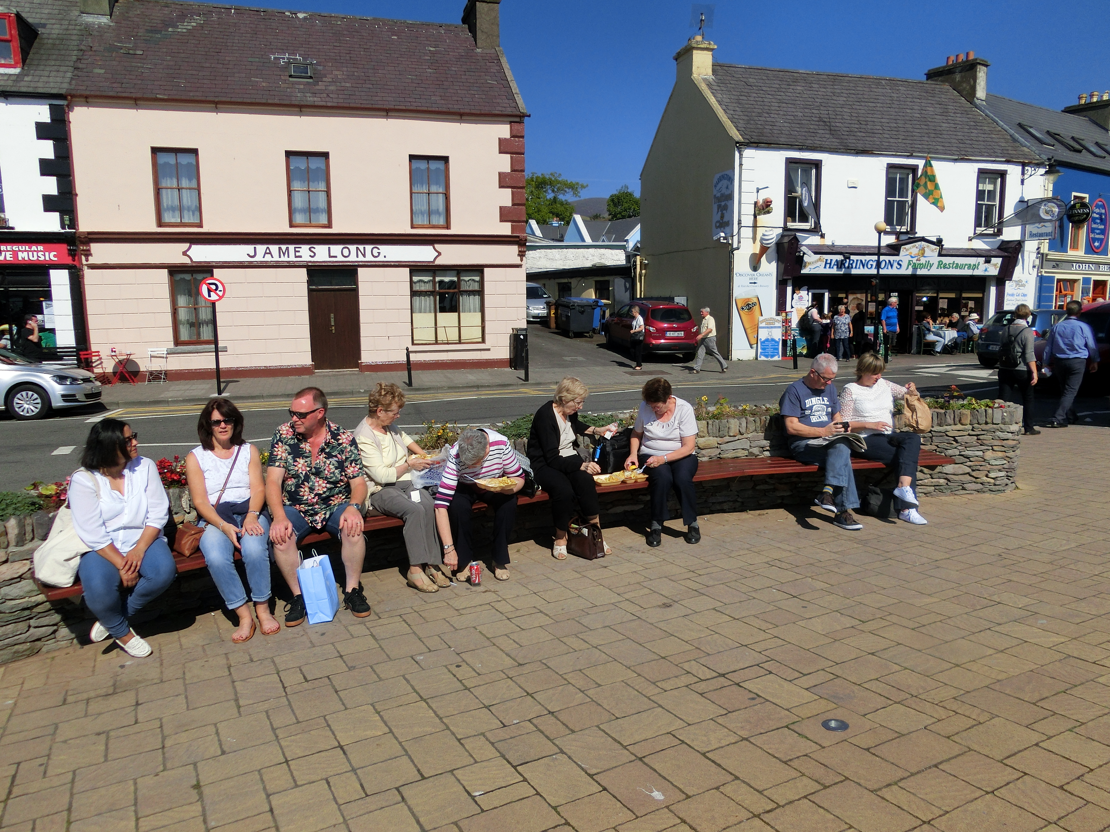 Während meiner Vesperpause, gemütlich auf einer Bank in der Sonne sitzend, vor dem Touristenbüro in Dingle, werde ich von einer rothaarigen Irin ( Kinder, ich erzähle keine Märchen) angesprochen.