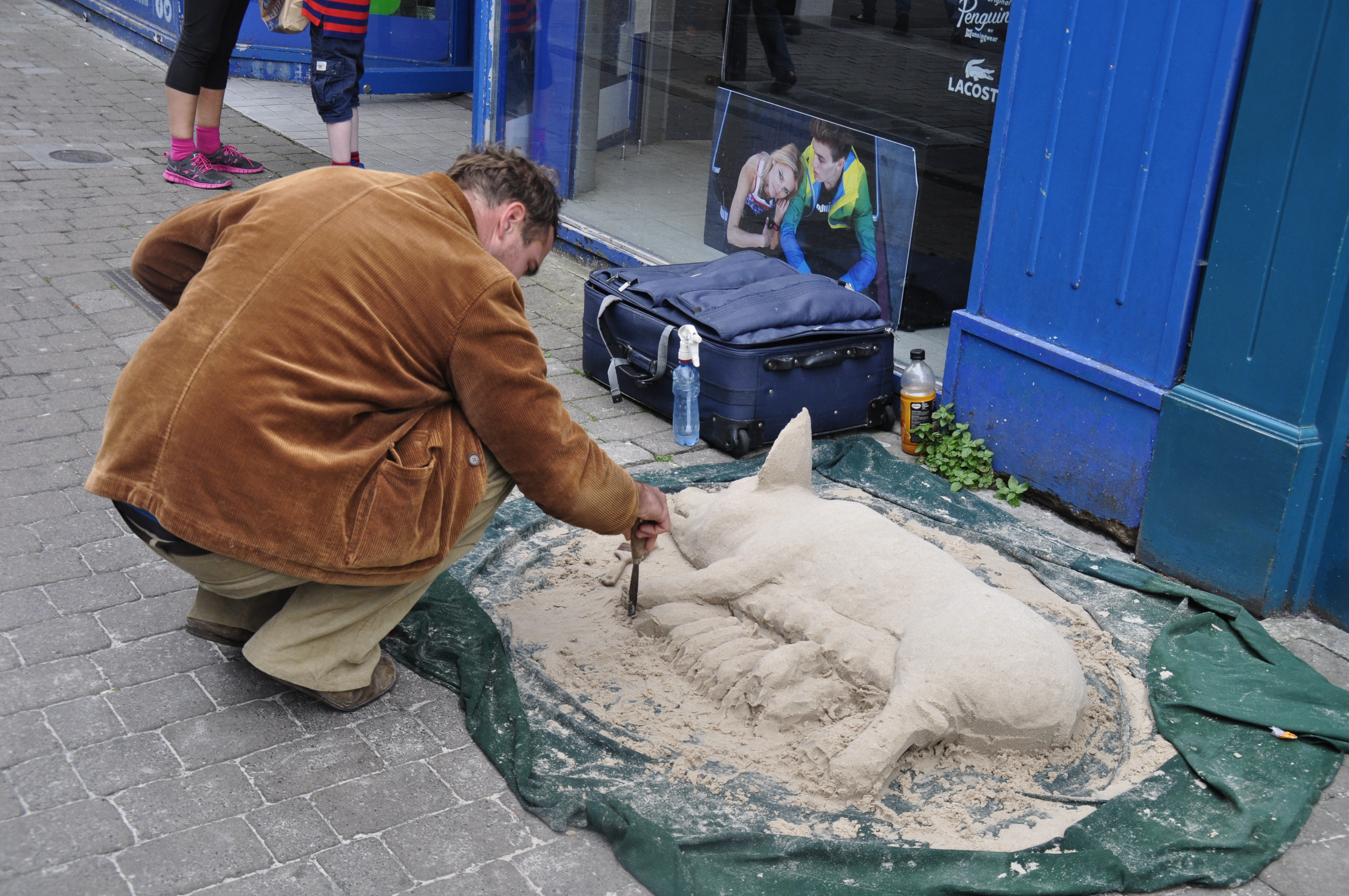 Und ein paar Häuserecken weiter versucht sich der nächste Street-artist an einem äußerst ungewöhnlichen Sandprojekt.