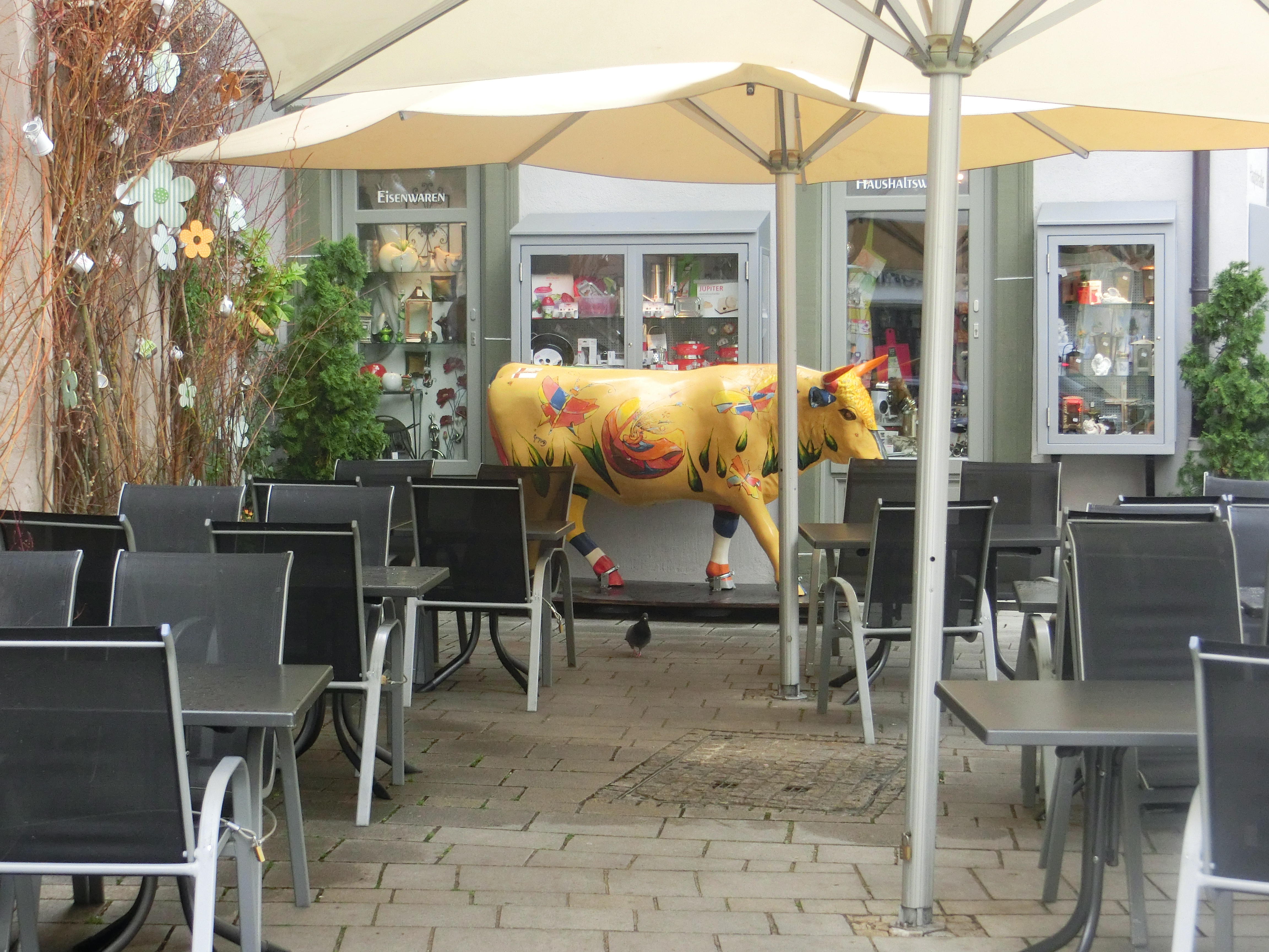 Im Cafe am Markt hatten die ersten Gäste Reißaus genommen, als der wilde Stier durch die Stuhlreihen preschte.