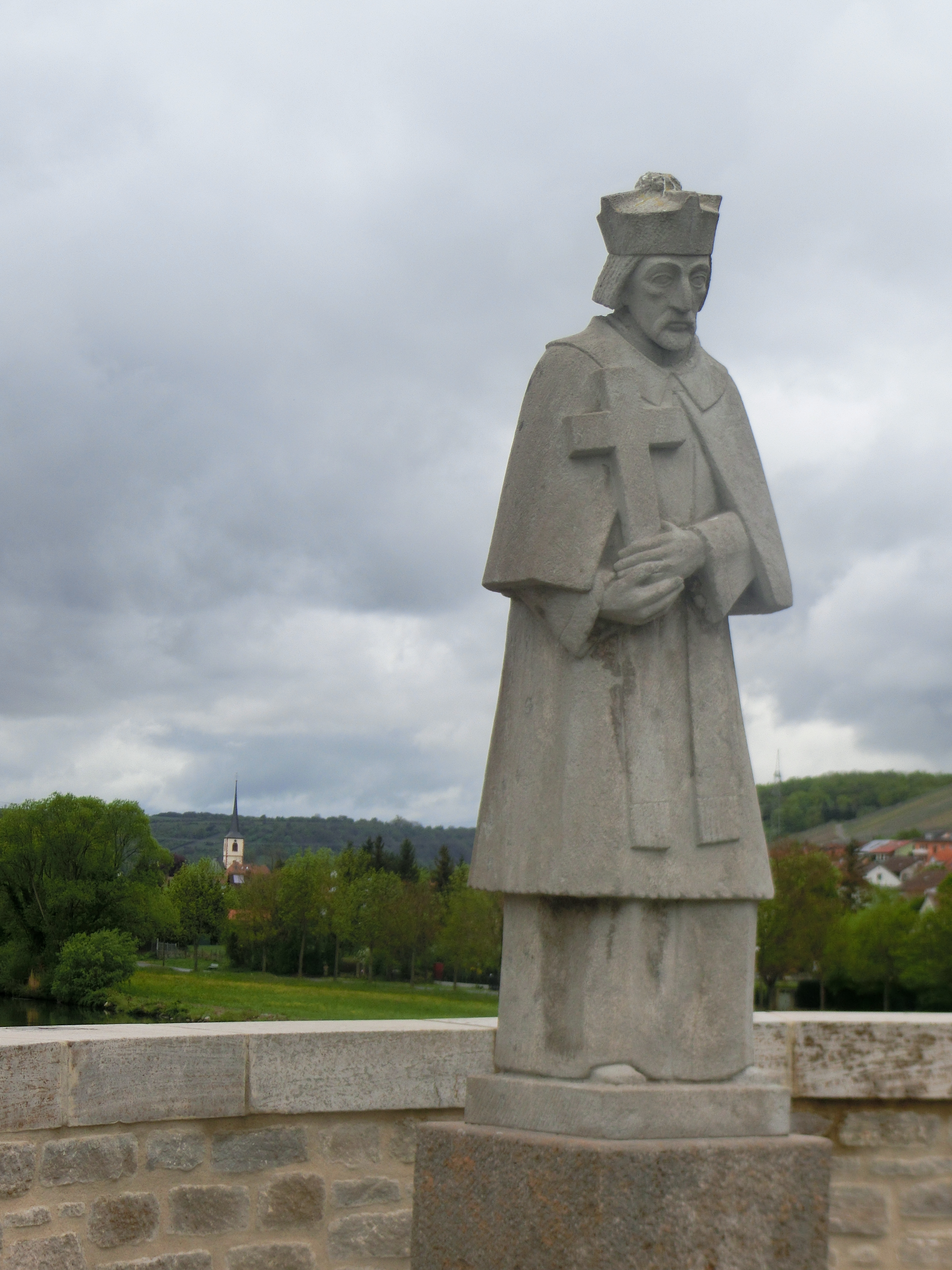 Ist auch unwichtig, wer über den Fluss will, kann über eine nagelneue Brücke am obligatorischen Brückenheiligen vorbeihetzen oder unter Inanspruchname eines winzigen Fährbootes, je nach Entschleunigungswunsch, sich übersetzen lassen.