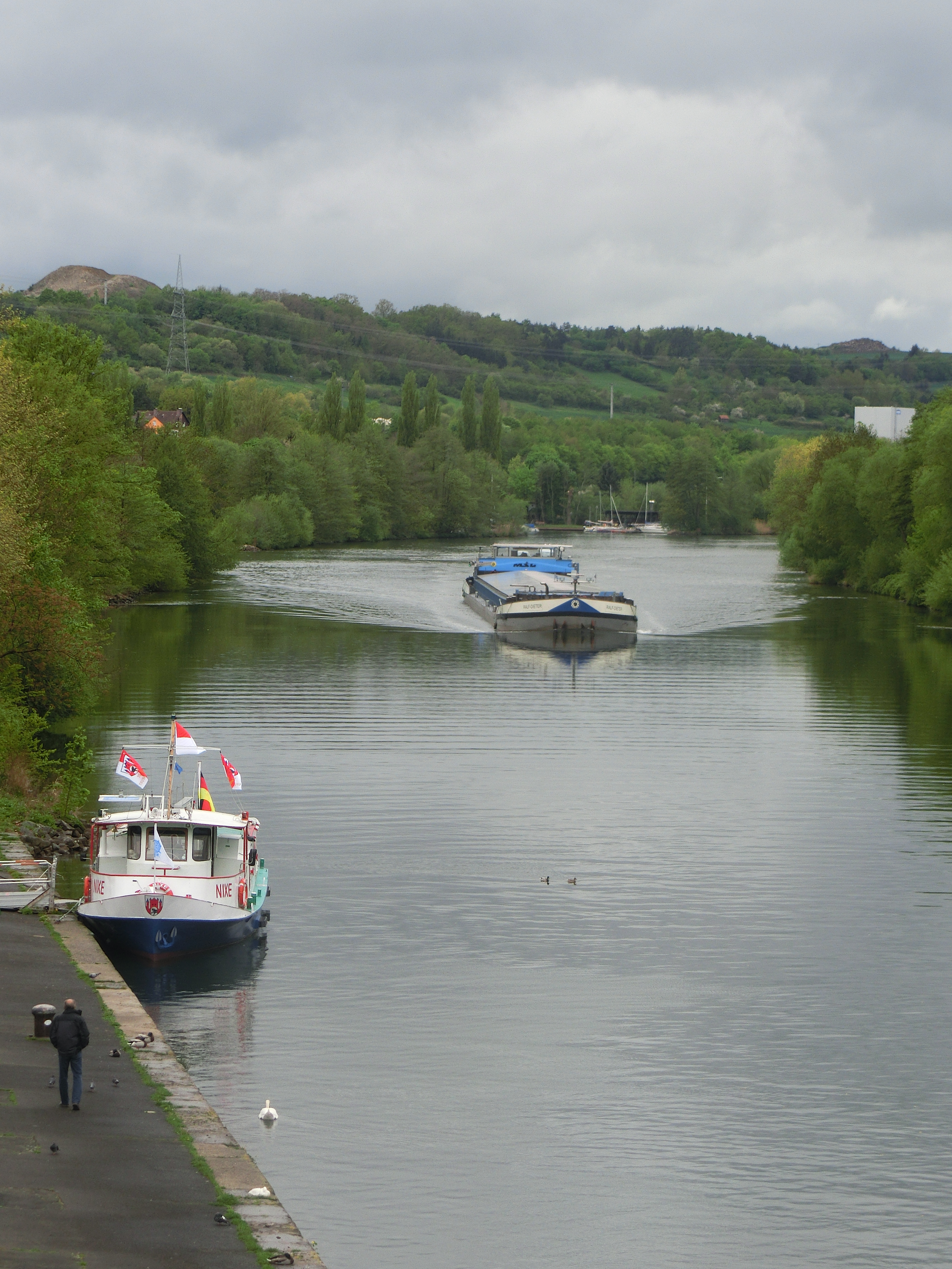 Bei der Enge des Flussbettes ist das für den Kapitän kein leichter Job, denn wie schnell ist ein solcher Pott aus dem Ruder gelaufen.