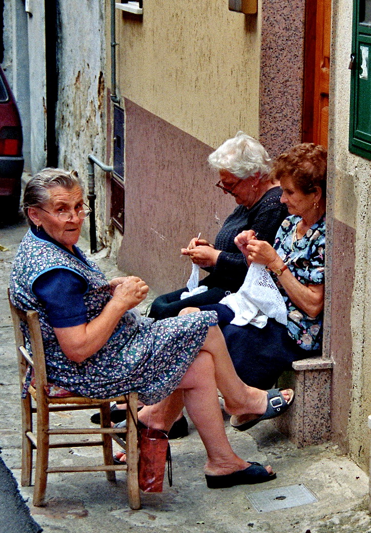 Vor der Haustüre auf einem einfachen Holzstuhl sitzend, gehen sie einem traditionellen Handwerk nach, das heute kaum noch ein Kind lernt.