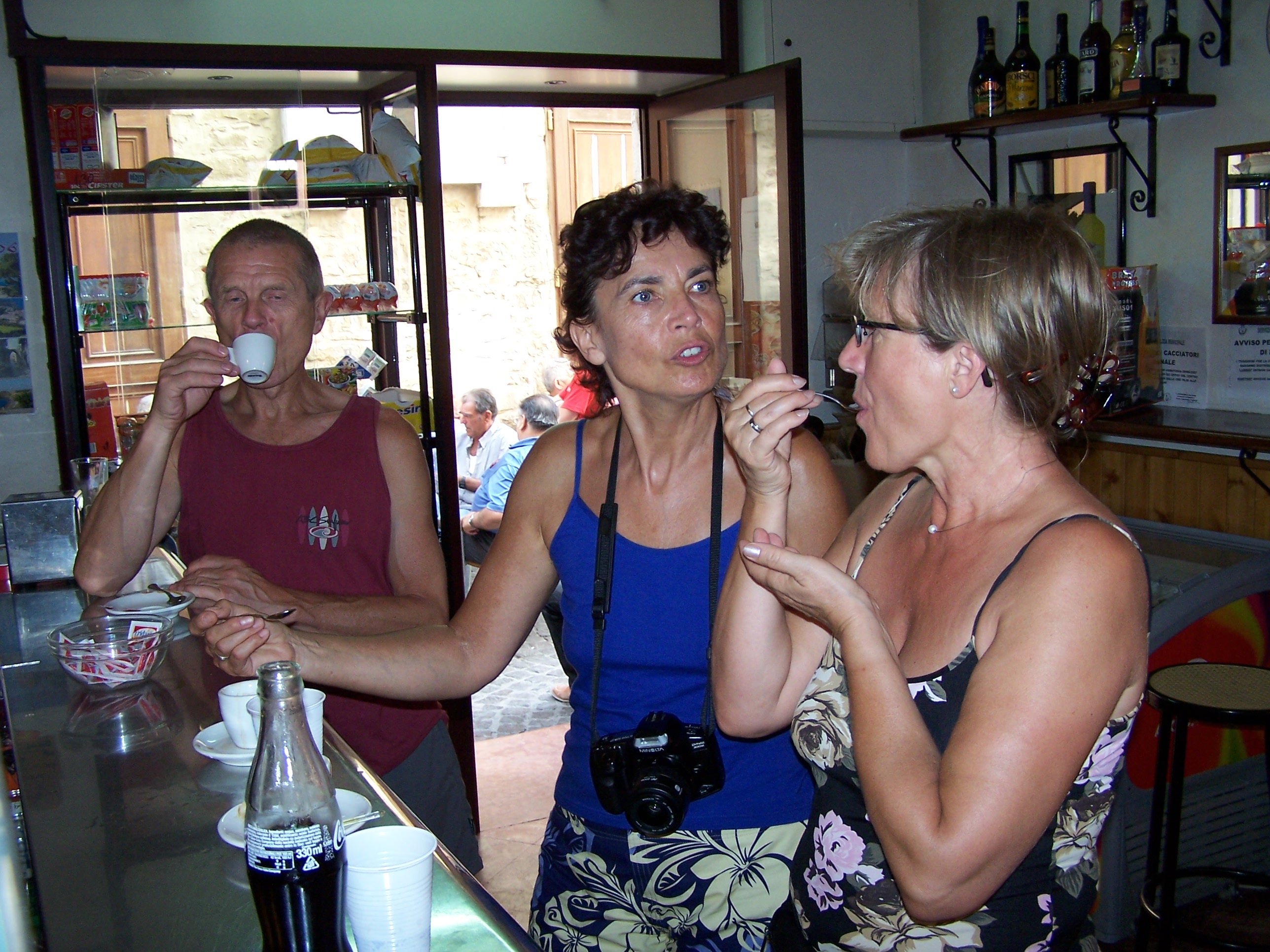 Jetzt ist Zeit für einen Espresso, wir betreten die Bar, sind die einzigen Gäste und die sicher älteste Dame unter den Siestamachenden schenkt ihn uns mit einigen Beschwerden aus.