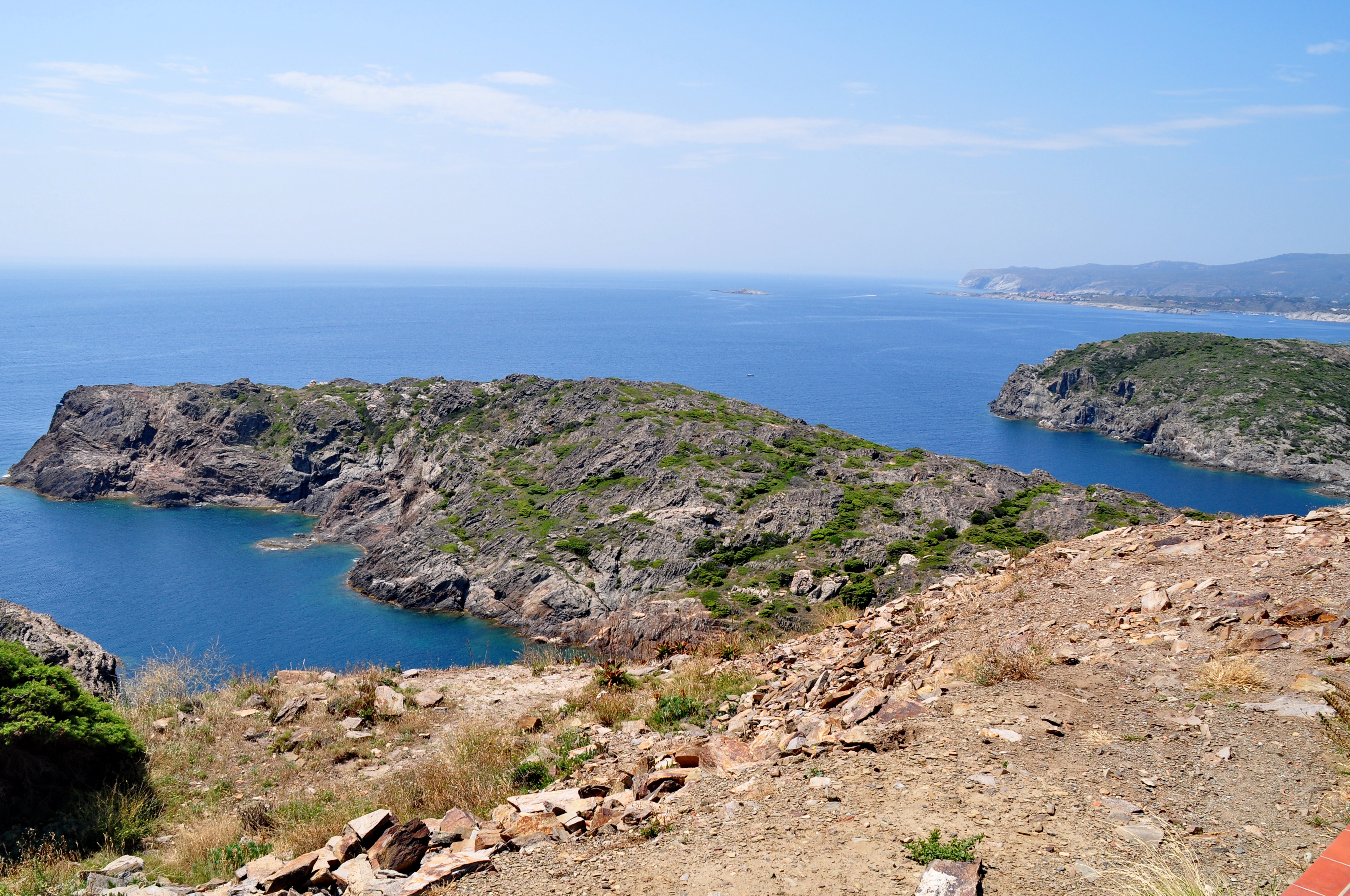 Von der Treppe aus blickt man in die tödliche Tiefe und, die nordöstliche Flanke der Bucht überblickend, über das Freiheit versprechende ruhige Meer.