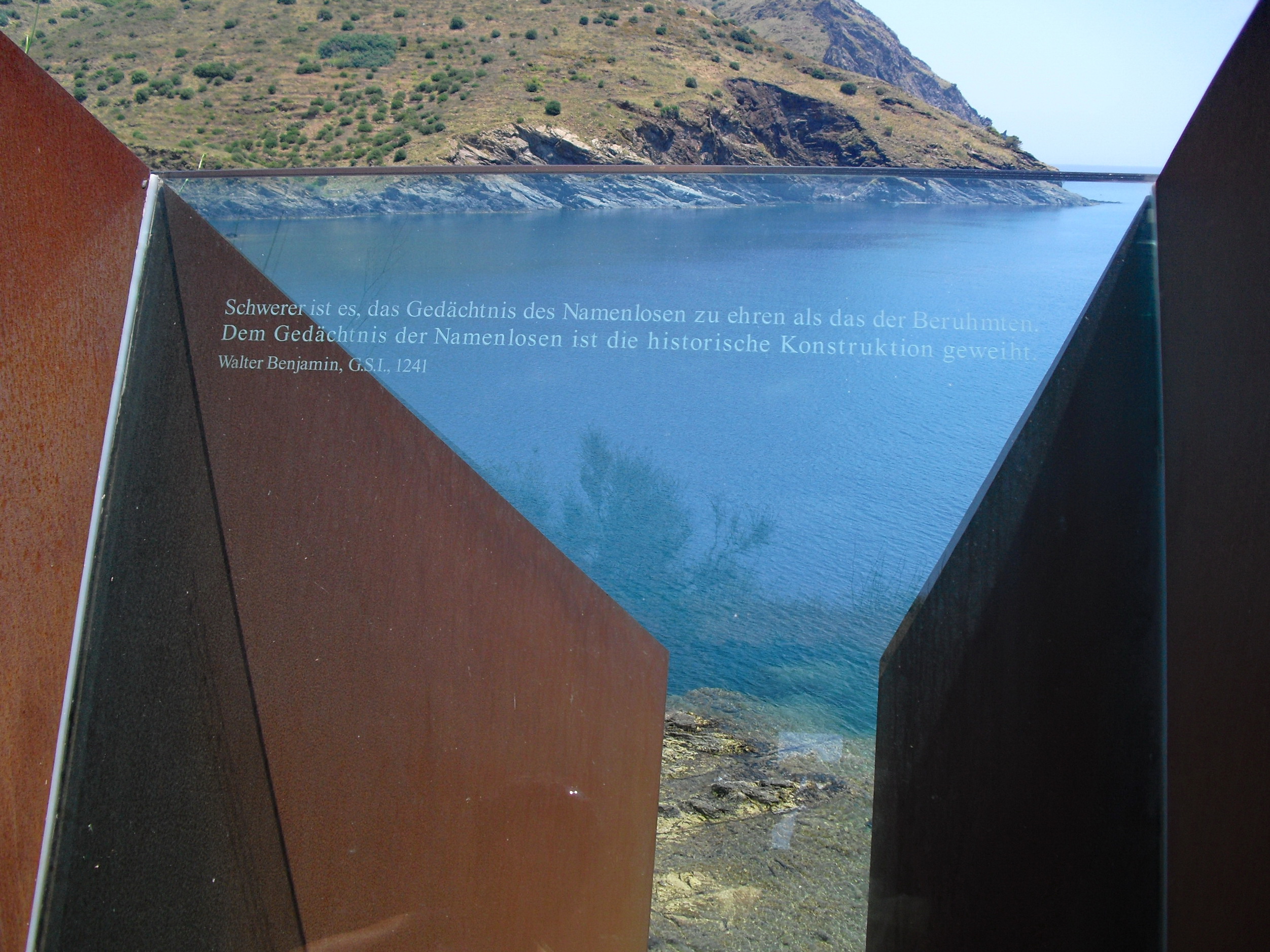 Der hier in Portbou zusammen mit anderen Emigranten versuchte über die spanische Grenze zu fliehen um, mit einem bereits ausgestellten USA-Visa, über Portugal nach dem Land der Freiheit zu entkommen.