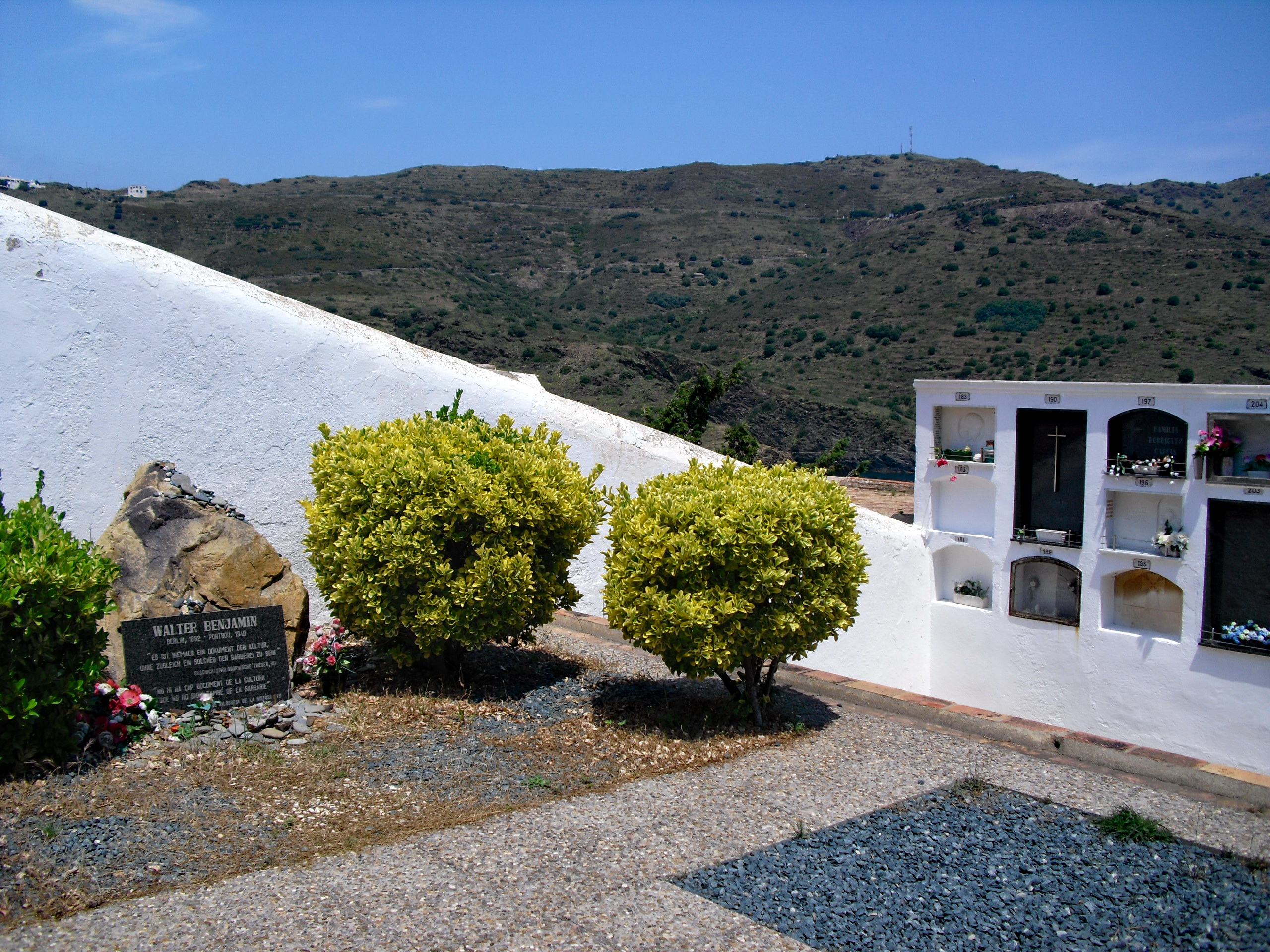Dani Karavan hat hier im Jahre 1994 ein Denkmal für Walter Benjamin geschaffen, das den Friedhof, zumindest den Eingangsbereich vor dem Friedhofstor, zu einem besichtigungswerten Ort in diesem kleinen, verschlafenen Fischerdörfchen werden ließ.