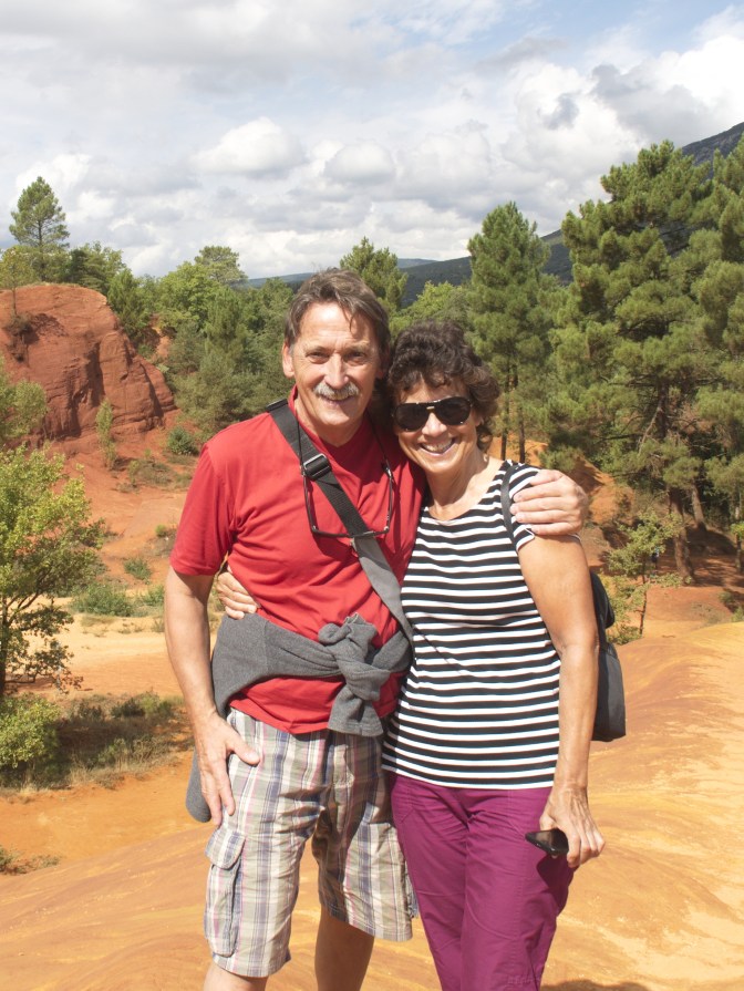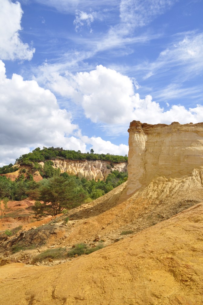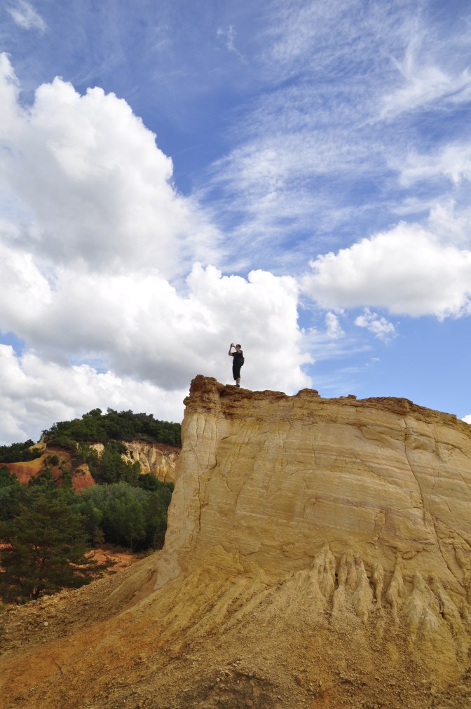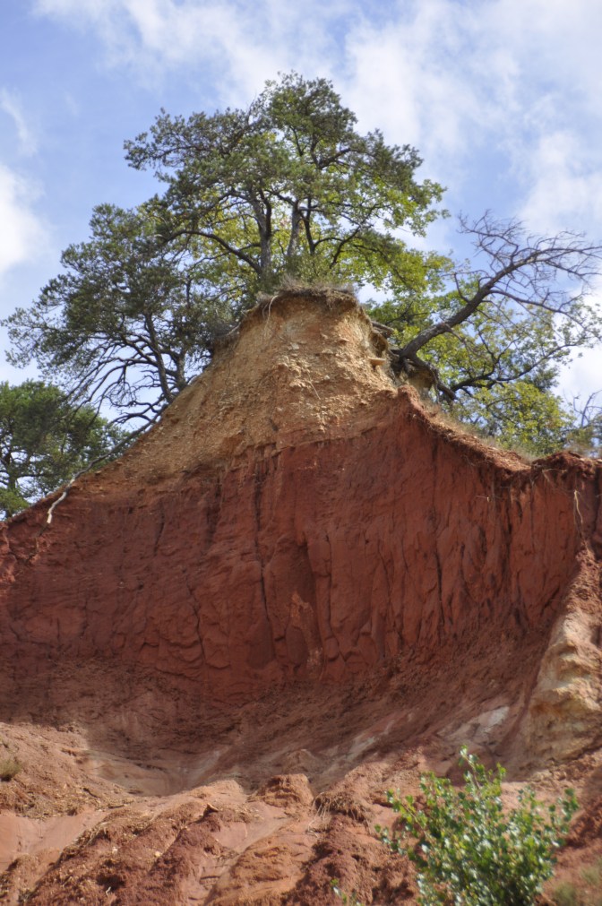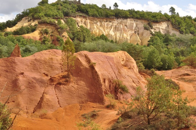 Dass wir von Rustrel aus über Gargas nach Roussillon weiterfahren werden, um dort das weltberühmte carriere d’ocre zu erwandern, dass wir hier im Colorado von Rustrel aber die Ockervorkommen in einer recht ursprünglichen Form begutachten und dass wir bereits durch unsere Reisevorbereitung wissen, dass sich hier vor 100 Millionen ein Meer befand, an dessen Grund sich Sedimente absetzten.