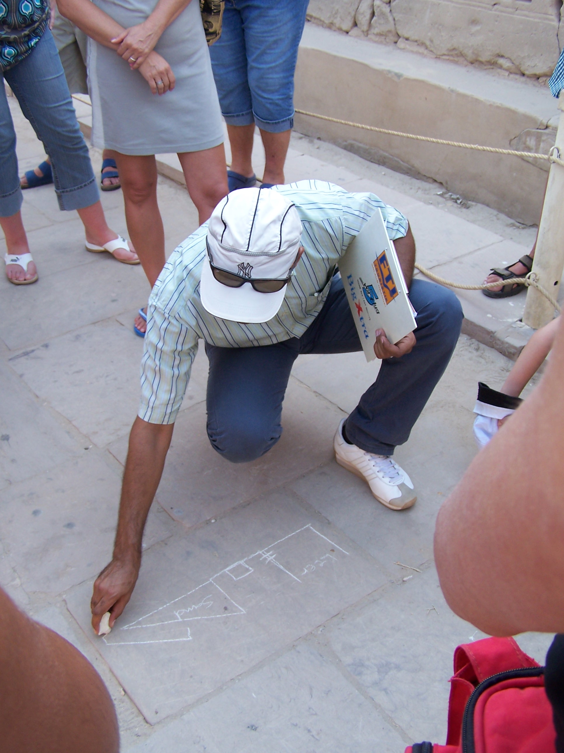 Mit wenigen Kreidestrichen ist das Aufstellen des größten Obelisken erklärt,
