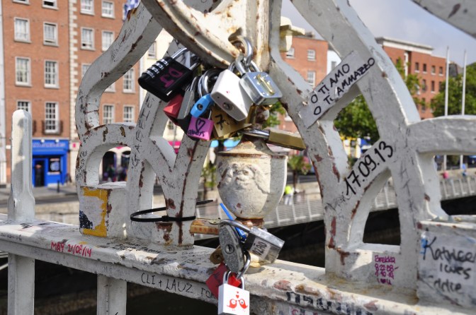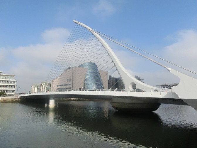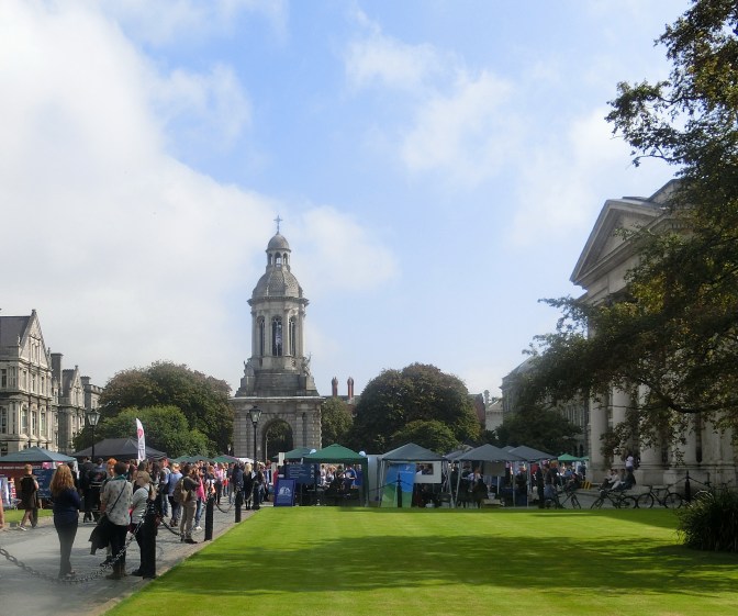 An der „Nadel“ vorbei, über die Half Penny Bridge den Liffey querend, im Osten sehen wir die moderne Samuel Becket Bridge, gelangen wir eigentlich ohne jede Stadtkartenhilfe zum großen Eingangstor des Trinity College in Dublin.