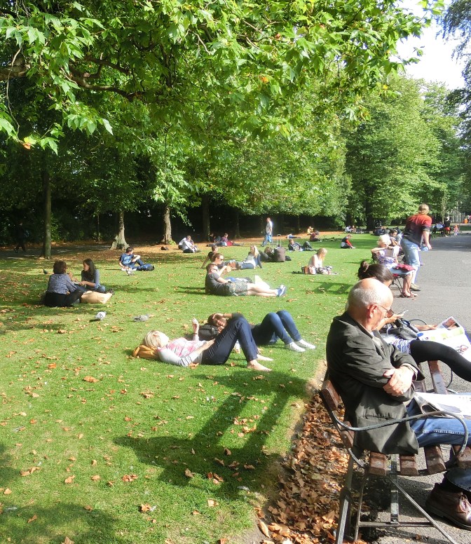 Alles hält sich strikt auf den Wegen auf, als würde im englischen, pardon irischen, Rasen das „Betreten-verboten“ Schild stecken.