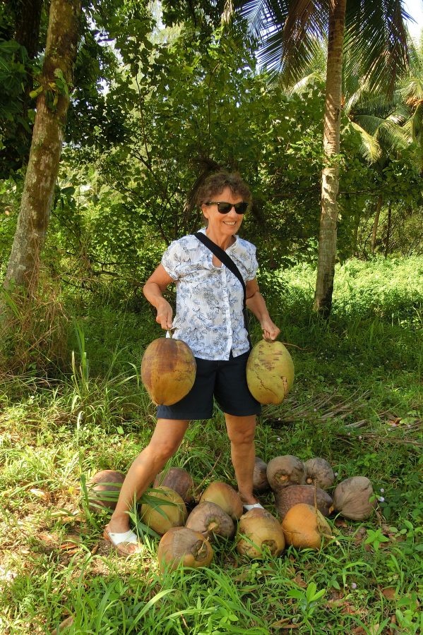 Uns genügen zwei Original Kokosnüsse aus der Gegend rund um Khao Lak, selbst geerntet, das hatten wir unserem Enkel versprochen.