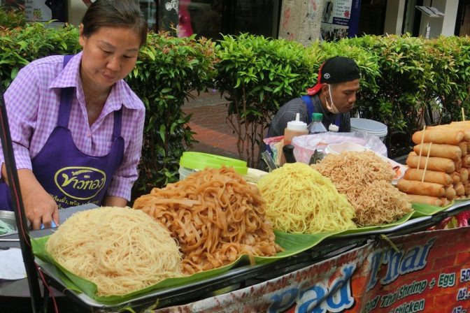 Einen Mangoshake mal schnell auf der Straße trinken, einen Teller Nudeln mit Ei, in einer der vielen Straßenküchen wokproduziert, verschlingen, ein kühles Singa, auf einem unbequemen Plastikstuhl sitzend, hinunterstürzen.
