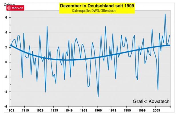 Die Durchschnittstemperatur für den Monat Dezember ist seit über 100 Jahren weder dramatisch angestiegen, noch ins Uferlose gepurzelt.