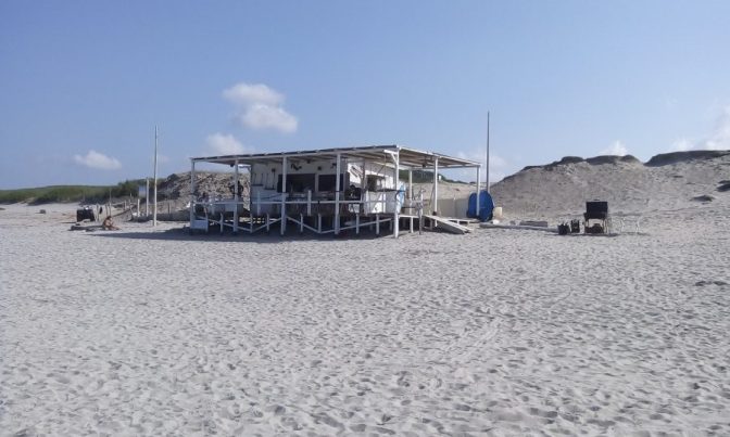 Eine weitere, nach den neuesten Gesetzen der Statik windfest errichtete Strandbar passierend, erblicken wir hinter den Felsen bereits die nächste mondsichelförmige kilometerlange Badebucht.
